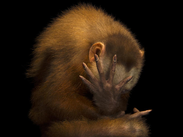 In Sartore’s photographs, the animals are decontextualized from their environments, resized so each is equal, and lit so that every hair, feather, and finger was in focus- nothing would distract one's gaze from the animal. Each image captures a distinct personality, from a Springbok Mantis gazing curiously at the viewer to a Bengal Slow Loris timidly peeking out from within a photographer’s hand. Looking at them, one feels a profound sense of kinsmanship. Next, reading the accompanying caption on the wall- ‘She is the last one of her species’ or ‘There are only forty left’ brings a wave of sadness and feeling of loss. The animals' eyes look directly at the viewer, daring them to look away. In this way, the animals are not passive objects to be looked at but gaze back at the viewer as equals as the viewer looks at them. Now that viewers feel a connection with the animal, they feel compelled to act, to try and save the species that they now know exists and matters.